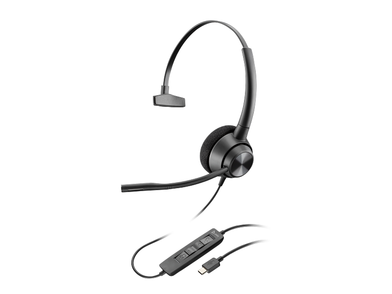 Poly Blackwire 3310 USB-A Headset | Microsoft Teams Certified | Noise-Cancelling Mono | Plug-and-Play | Plush Comfort | SKU 767F6AA
